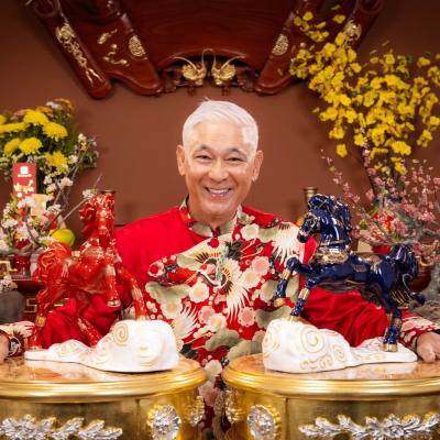 When the elegant demeanor of artist-businessman Tung Yuki blends with the regal red of the "Blood-Sweating Horse" artwork, a vibrant and warm spring atmosphere comes alive.